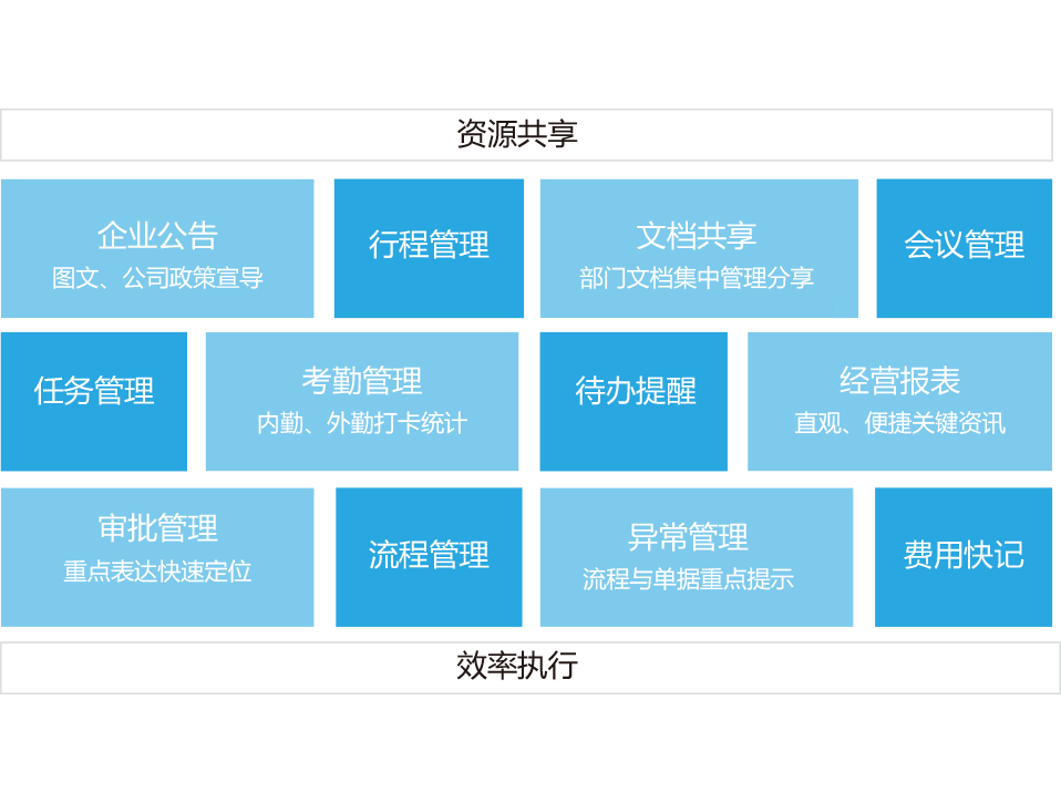 移動(dòng)審批、異常管理、流程管理、考勤管理、內(nèi)外打卡、請(qǐng)假出差、資源管理、