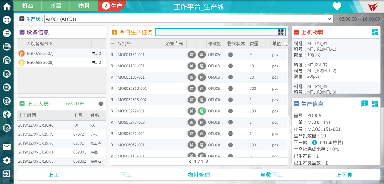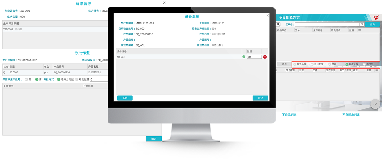 報工用料 安燈預(yù)警 進(jìn)度看板 設(shè)備看板 派工調(diào)度 效率分析 數(shù)據(jù)采集 首巡末檢 狀態(tài)監(jiān)控 物料齊套