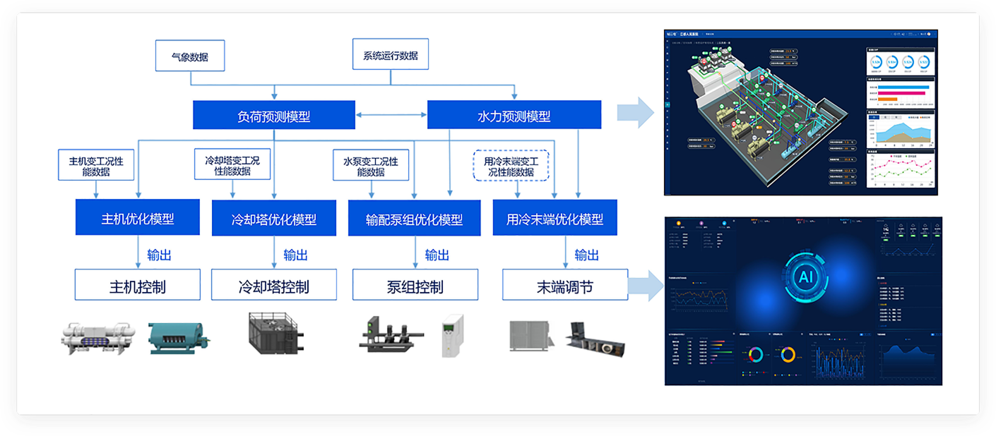 基于多層級的人工智能算法與專家知識圖譜,結(jié)合案場特性,對中央空調(diào)系統(tǒng)進(jìn)行全局尋優(yōu),實(shí)現(xiàn)最優(yōu)效果