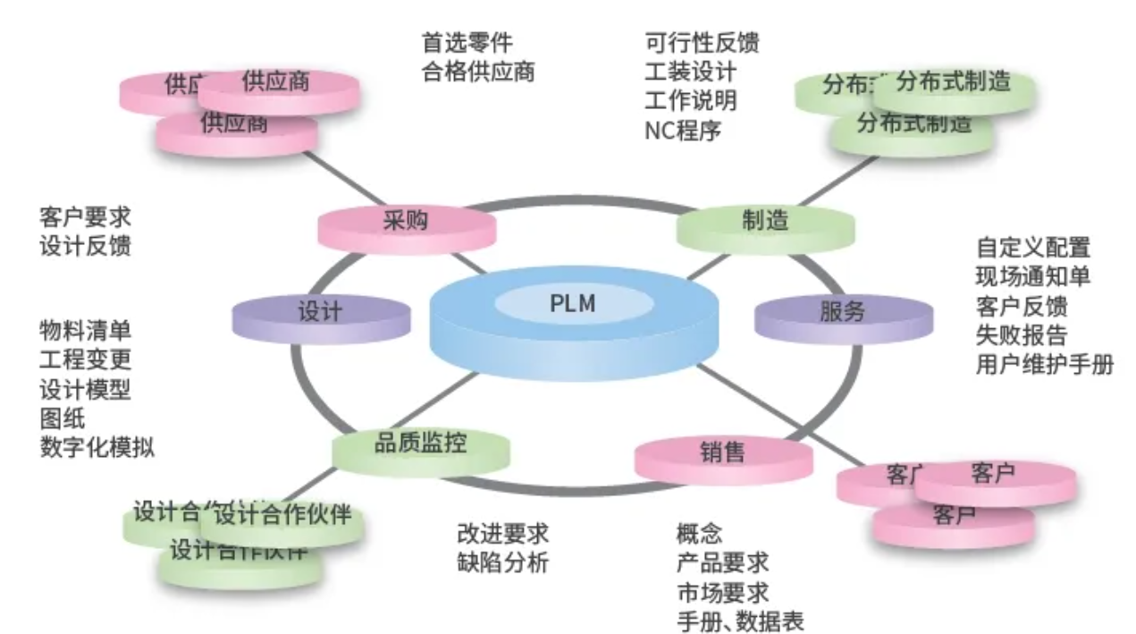 PLM作為數(shù)據(jù)源頭,透由信息平臺,與ERP、MES、SRM、APS、SCADA信息串聯(lián),建立從設(shè)計到生產(chǎn)運營的快速通道,高效傳遞數(shù)據(jù),大大縮短產(chǎn)品交付周期。