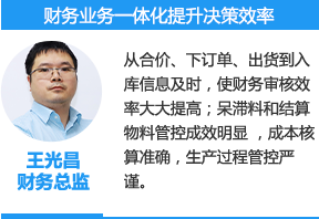 從合價(jià)、下訂單、出貨到入庫信息及時(shí),使財(cái)務(wù)審核效率大大提高;呆滯料和結(jié)算物料管控成效明顯 ,成本核算準(zhǔn)確,生產(chǎn)過程管控嚴(yán)謹(jǐn)。