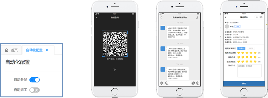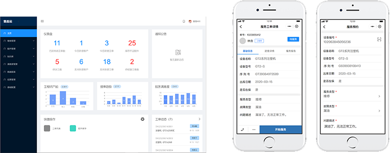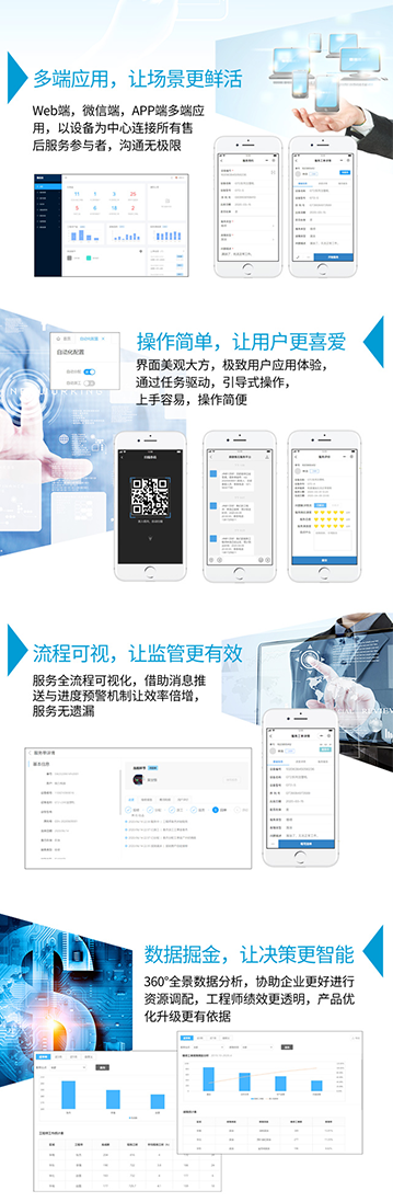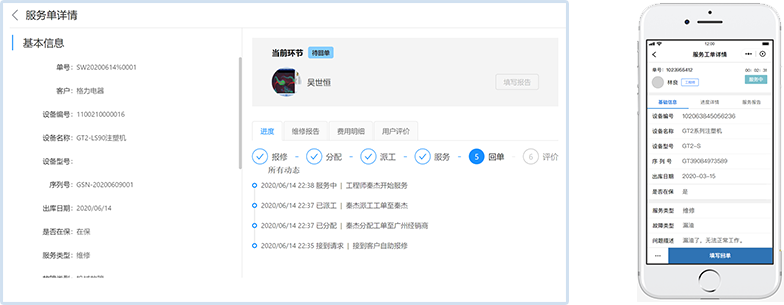 Web端,微信端,APP端多端應(yīng)用,以設(shè)備為中心連接所有售后服務(wù)參與者,溝通無極限