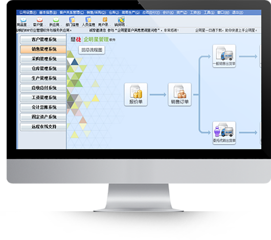企明星商貿(mào)版采用業(yè)務(wù)流程導(dǎo)航式人性化設(shè)計(jì),具有“簡單實(shí)用,操作方便,