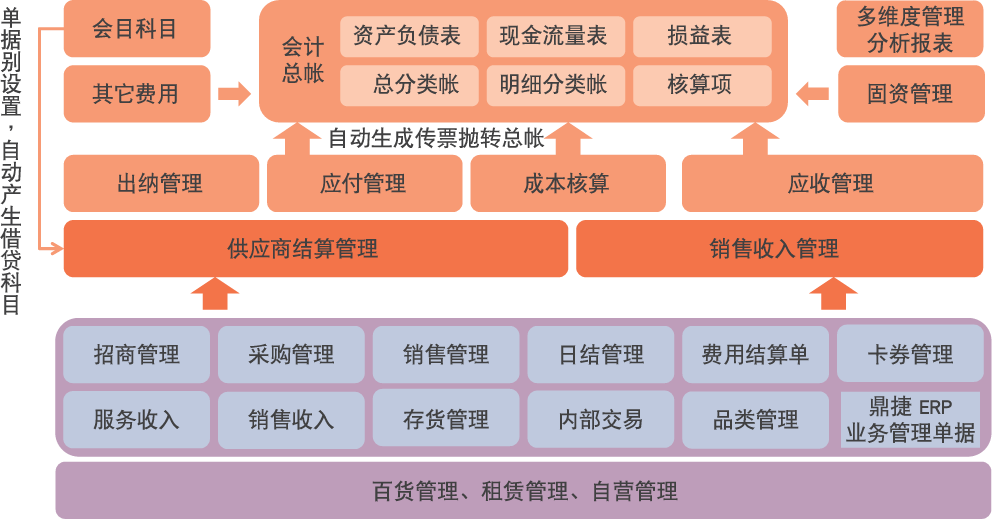 鼎捷綜合零售全渠道解決方案,匯集前端業(yè)務(wù)管理單據(jù),依據(jù)合同條款自動(dòng)進(jìn)行供應(yīng)商結(jié)算、銷貨收入認(rèn)列與成本核算,自動(dòng)生成財(cái)務(wù)相關(guān)對(duì)應(yīng)管理憑證,提供企業(yè)業(yè)務(wù)財(cái)務(wù)一站到底的全智能一體化的管理流程。