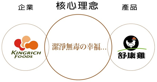 為營造更完善的養(yǎng)雞產(chǎn)業(yè)生態(tài),金豐盛公司的另一個長期發(fā)展策略是要以創(chuàng)新的產(chǎn)品與服務(wù),發(fā)展最高品質(zhì)的雞肉品牌,滿足國內(nèi)市場對食品安全的高度渴望、高所得地區(qū)對食物品質(zhì)的高要求。自2014年起啟動自創(chuàng)品牌「舒康雞」專案,選用全植物性飼料,全程不使用抗生素,透過精密的飼養(yǎng)管理方法,提高雞肉的鮮甜度,確保低脂、無腥味並保證無藥物殘毒,領(lǐng)先業(yè)界以量產(chǎn)形式提供消費者最優(yōu)質(zhì)、最安全的蛋白質(zhì)食物。