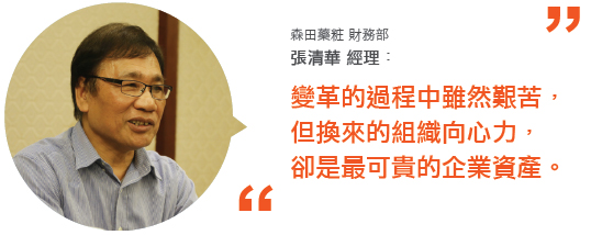 看似平凡的流程,加以運(yùn)用後卻能創(chuàng)造不平凡的效益,為此,林財(cái)務(wù)長也指出:「通往變革的路上,與其說森田是流程再造,不如說是流程固定?!宫F(xiàn)在,森田的同仁也因?yàn)槭褂孟到y(tǒng)後,開始具備流程管理的概念,員工的思維更具邏輯性,正因?yàn)槟苷莆諉栴}的環(huán)節(jié)與原因,在溝通上更為明確與具體,也更能快速調(diào)整,「現(xiàn)在,我們的團(tuán)隊(duì)擁有共同的話語、共同的流程,解決問題的速度就更快,表面上看似只是ERP的導(dǎo)入,但卻讓團(tuán)隊(duì)更為成長!」林財(cái)務(wù)長進(jìn)一步說。