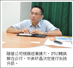 陳經(jīng)理進(jìn)一步說(shuō)明,隨著公司規(guī)模逐漸擴(kuò)大,公司宣布將旗下半導(dǎo)體矽晶圓、LED藍(lán)寶石基板二大事業(yè)體進(jìn)行獨(dú)立分割,TIPTOP 3.0版本已不符合現(xiàn)在和未來(lái)的需求;再者,金管會(huì)於民國(guó)98年宣布我國(guó)會(huì)計(jì)準(zhǔn)則直接採(cǎi)用IFRS推動(dòng)架構(gòu),並規(guī)劃分階段採(cǎi)用國(guó)際會(huì)計(jì)準(zhǔn)則,IFRS轉(zhuǎn)換不僅是會(huì)計(jì)準(zhǔn)則及財(cái)務(wù)報(bào)導(dǎo)方式的改變,也會(huì)改變公司內(nèi)部作業(yè)程序、資訊系統(tǒng)整合與管理模式。陳經(jīng)理指出,由於國(guó)外IFRS準(zhǔn)則和臺(tái)灣仍有所差異,鼎新IFRS一體化的解決方案涵蓋軟硬體和顧問(wèn)諮詢(xún)服務(wù),能協(xié)助中美矽晶順利導(dǎo)入專(zhuān)案與完成IFRS轉(zhuǎn)換,因而決定進(jìn)行系統(tǒng)升級(jí)。