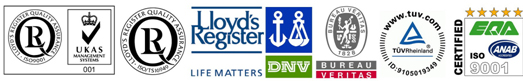 英國勞氏(LR) Lloyd’s Register、德國萊茵(TüV)、美國ANAB(原ANSI-RAB)、驗船協(xié)會認證、臺灣全國認證積金會TAF實驗室認證處(原CNLA)、ISO-17025 中華民國實驗室認證體系等認證。
