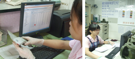 目前現(xiàn)場是由每個單位指派專人回報,每條生產(chǎn)線旁邊都會架設(shè)一臺電腦,並且搭配條碼輸入的方式報工,如果單據(jù)不見了人員就無法輸入,所以強迫務(wù)必要有單據(jù)才能做進站的動作,讓人員瞭解單據(jù)的重要性。