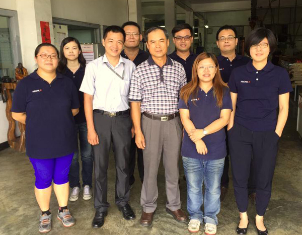 由左到右:前排_生管(窗口)珮瑜、鼎新顧問師、總經(jīng)理、採購怡君、特助玉婷?