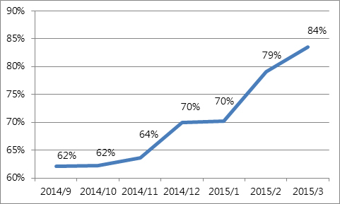 ▲圖二 訂單準(zhǔn)交率趨勢圖(2014/9-2015/3)