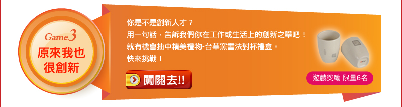 5.獎項內(nèi)容不得折抵現(xiàn)金或更換其他等值商品,獎品發(fā)放後如有遺失、盜領(lǐng)或損毀,主辦單位恕不補發(fā),對獎品之瑕疵亦不負(fù)賠償責(zé)任。
