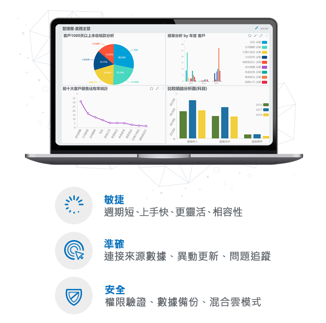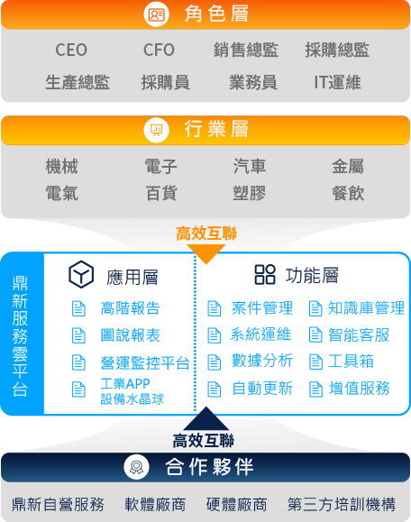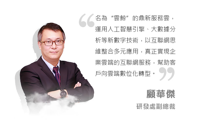 為“雲(yún)鯨”的鼎新服務(wù)雲(yún),運(yùn)用人工智慧引擎、大數(shù)據(jù)分析等新數(shù)字技術(shù),以互聯(lián)網(wǎng)思 維整合多元應(yīng)用,真正實(shí)現(xiàn)企業(yè)雲(yún)端的互聯(lián)網(wǎng)服務(wù),幫助客戶向雲(yún)端數(shù)位化轉(zhuǎn)型。