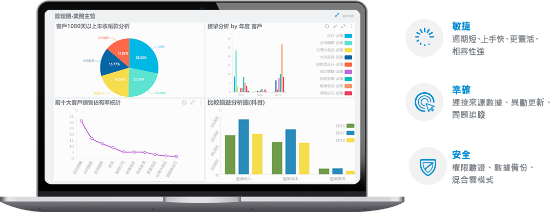 簡(jiǎn)單推曳即可產(chǎn)生多種圖表類型 折線圖、圓餅圖、直條圖… 幫您做出專業(yè)的商業(yè)圖表