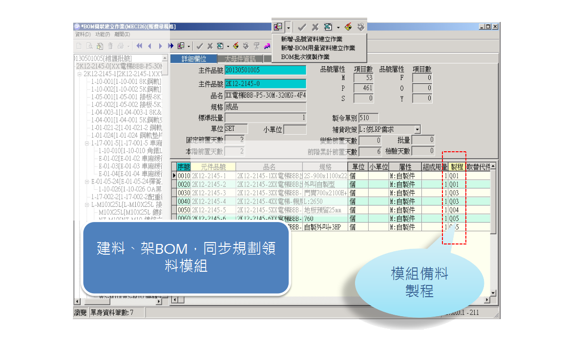 機(jī)臺零件800~900個(gè),整臺料備出來費(fèi)時(shí)費(fèi)工,且缺料品項(xiàng)眾多。設(shè)變一多,補(bǔ)料、追加料更是夢魘。