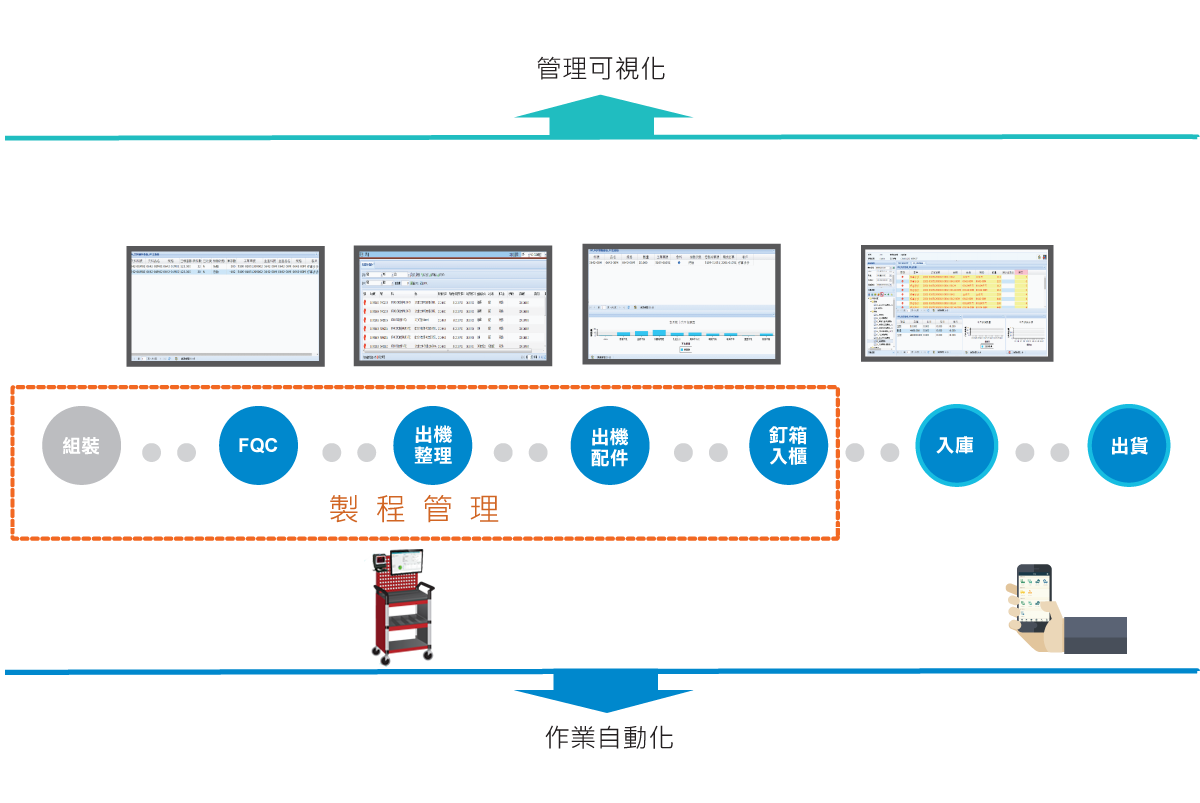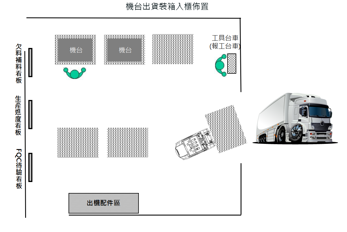 出機人員:出機的進度變動大,很難掌握目前已經(jīng)做到哪裡了。後續(xù)出機配件包裝、裝箱、入櫃,都得靠跑現(xiàn)場才能掌握進度。 -