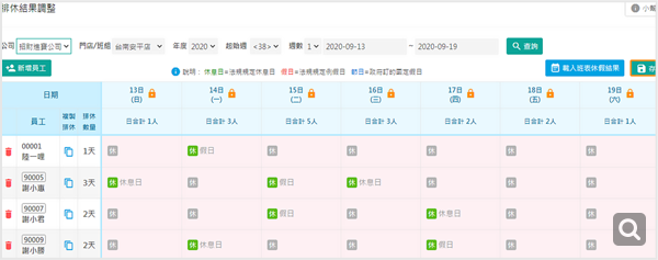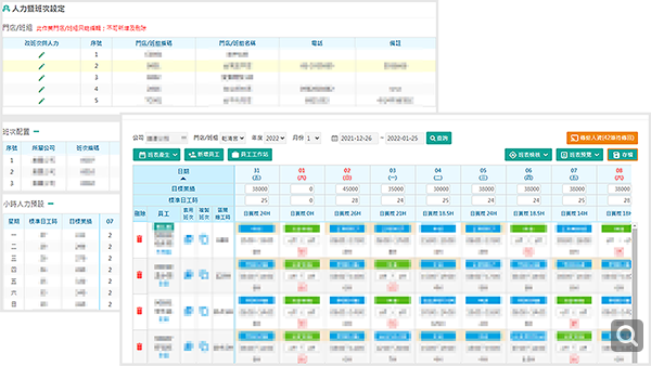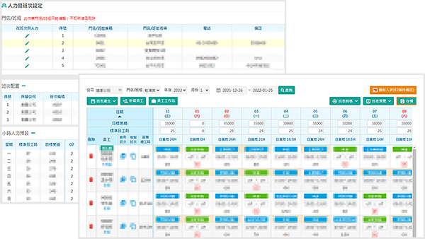 可統(tǒng)整各區(qū)班店/班組人力班表
