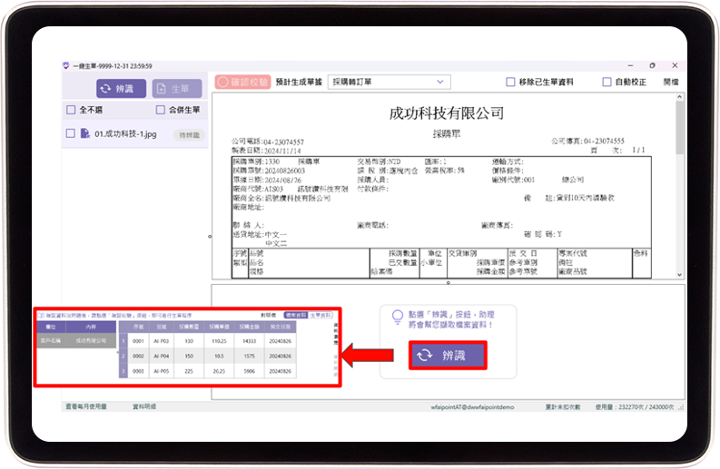 鼎新AI整合至日常流程。圖文辨識(shí)減少ERP手動(dòng)Key單與操作,加速產(chǎn)出並減少出錯(cuò)。