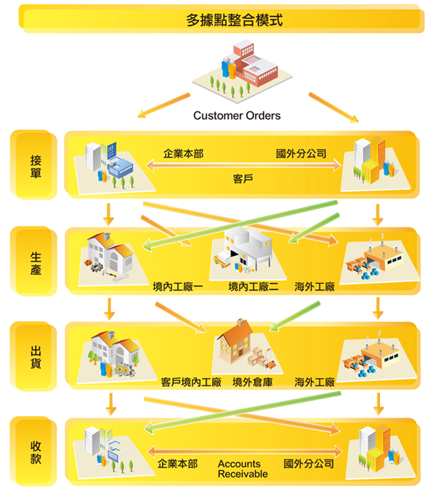 Workflow ERP GP系統(tǒng)提供更彈性的多語(yǔ)言架構(gòu),可切換繁體中文、簡(jiǎn)體中文、英文以及越南文語(yǔ)系介面,另有自訂語(yǔ)系翻譯字詞功能,提供在地化使用者應(yīng)用,因應(yīng)各地特有法令進(jìn)行系統(tǒng)調(diào)整產(chǎn)出報(bào)表:例如中國(guó)大陸加工貿(mào)易的管理、海關(guān)合同配合海關(guān)接口,並可直接從ERP中產(chǎn)出相關(guān)文件,協(xié)助減化各項(xiàng)進(jìn)出口貨物流程。同時(shí)協(xié)助製造單位與生管單位在同一平臺(tái)上,進(jìn)行生產(chǎn)規(guī)劃及製程即時(shí)資訊掌控,並可透過(guò)條碼機(jī)制協(xié)助現(xiàn)場(chǎng)人員進(jìn)行生產(chǎn)資訊申報(bào),達(dá)到降低作業(yè)成本,提升人員效率,提高製造資訊正確性,建立快速有效的生產(chǎn)模式。