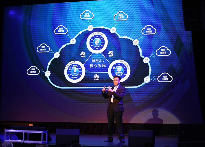 ▲因應(yīng)互聯(lián)網(wǎng)+工業(yè)4.0趨勢(shì),鼎新電腦 葉子禎 總裁,揭櫫「三環(huán)一線」戰(zhàn)略布局。