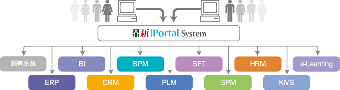 鼎新Portal除了提供基本的企業(yè)EIP及協(xié)同功能,讓使用者登入鼎新Portal,即可看到公司即時(shí)資訊,快速連結(jié)公司資源;運(yùn)用協(xié)同功能達(dá)到組織合作的強(qiáng)效效益,更利用SSO機(jī)制整合鼎新開發(fā)的ERP及ERPII系統(tǒng),統(tǒng)一鼎新的系統(tǒng)入口。往後,客戶若導(dǎo)入新的鼎新系統(tǒng),對(duì)使用者觀感而言,只是在鼎新Portal頁(yè)面多一項(xiàng)新功能,消除End User多一套系統(tǒng)即多一個(gè)麻煩的感覺,也讓企業(yè)建立的e化環(huán)境更友善。